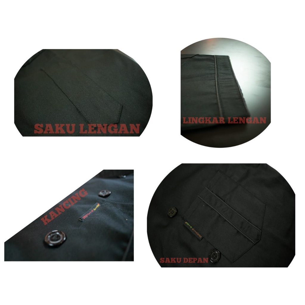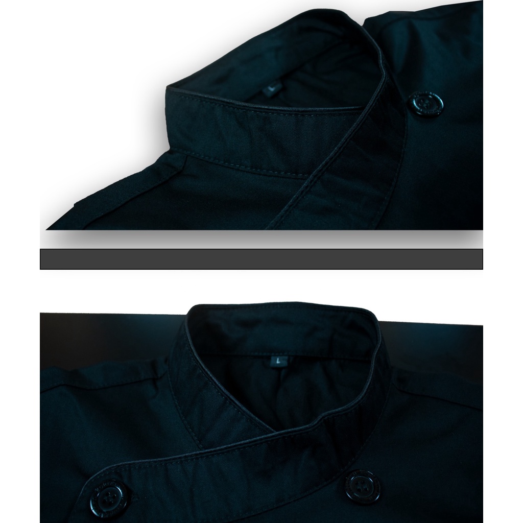 Chef Jacket Kemeja Kerja Baju Koki Pria Wanita Lengan Pendek Panjang Bahan Drill Model Mandarin