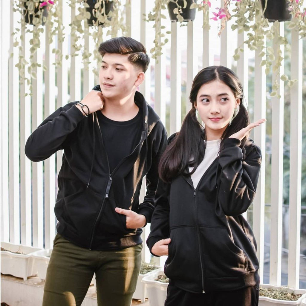 Sweater Jaket Hoodie Polos Zipper Jumper Unisex Pria Wanita Couple Oversize M- XL Bahan Fleece