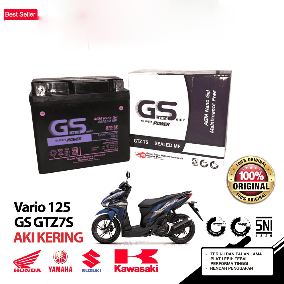 Aki Motor GTZ7S Accu Kering MF VARIO 125/150 BEAT SCOOPY ISS CB150R NMAX SATRIA FU
