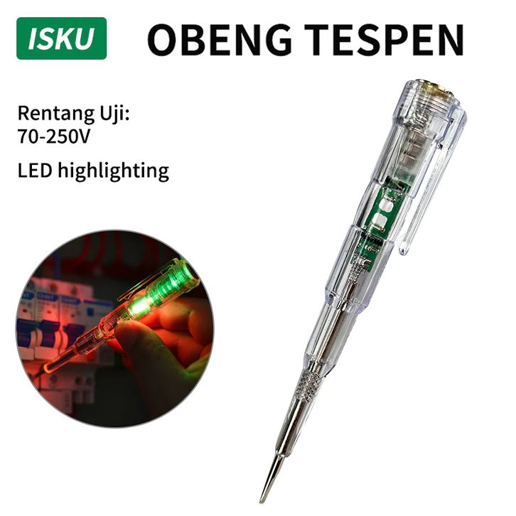 ISKU obeng tespen/tes listrik periksa kabel rusak/tes listrik indikator led ganda merah hijau sensor deteksi