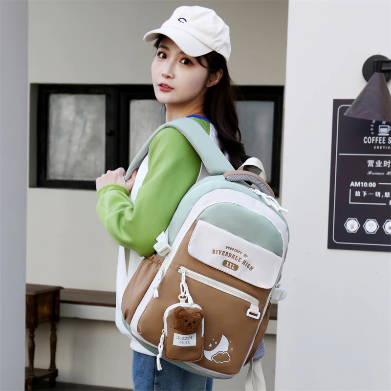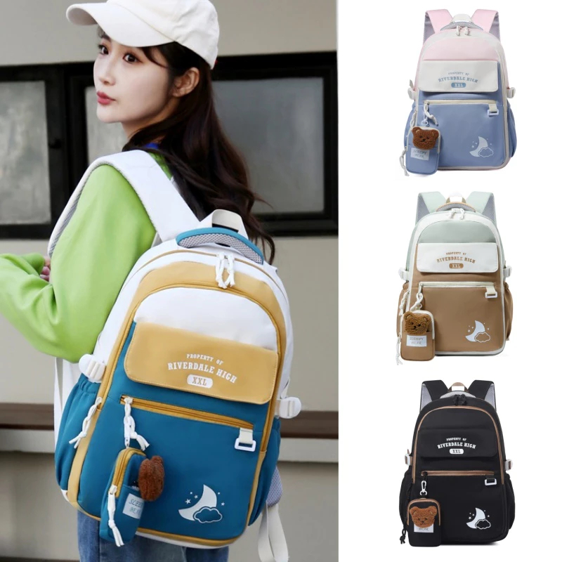 Tas Sekolah Anak Perempuan Import AZ6075 Series Premium Tas Ransel Gendong Backpack Motif Polos Aesthetic Terlaris Murah