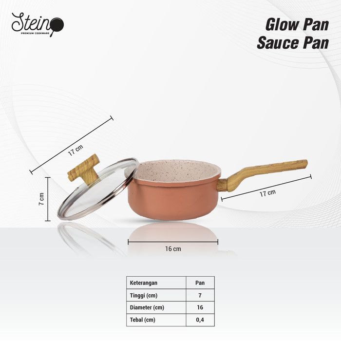 STEIN Glowpan Saucepan 16cm Wood Handle with Lid - Panci Satuan Lapisan Marbel + Tutup - Golden Brown