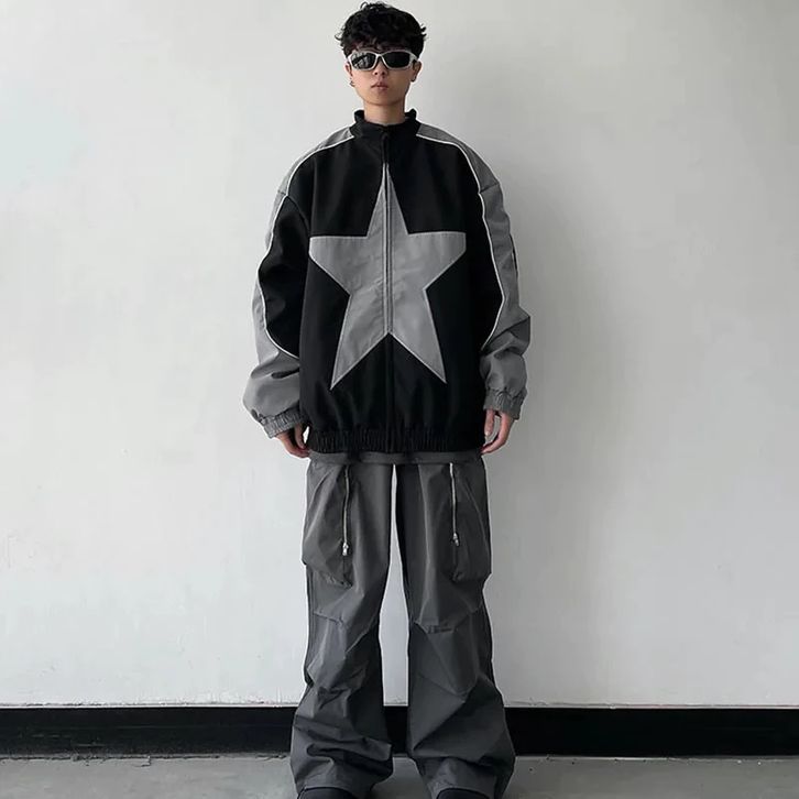 Jaket Pria Keren Terbaru WindBreaker Y2k Star Pettern Parasut Original Gorpcore Waterproof Gunung Distro Jumbo