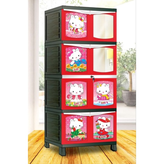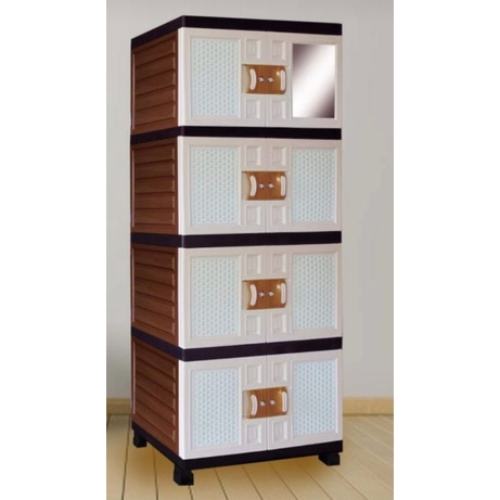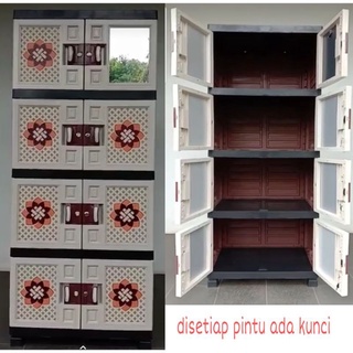 Lemari pakaian lemari plastik jumbo motif rotan/batik susun 4 dan 3 +cermin
