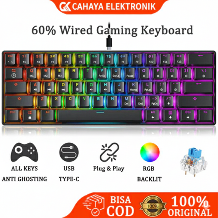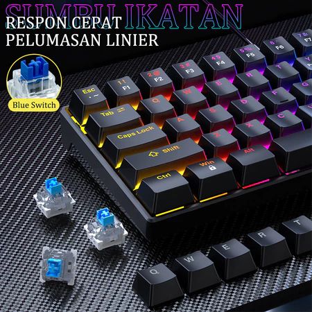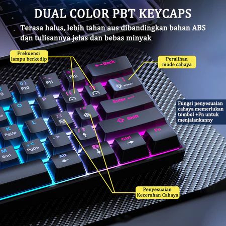 [Mall] keyboard wireless mechanical gaming + mouse wireless set backlit rgb rechargeable silent klik laptop pc komputer