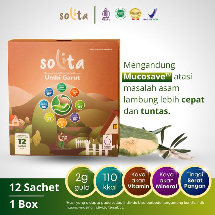 SOLITA MINUMAN SERBUK UMBI GARUT ATASI ASAM LAMBUNG, MAAG, GERD | RASA COKELAT - 12 SACHET