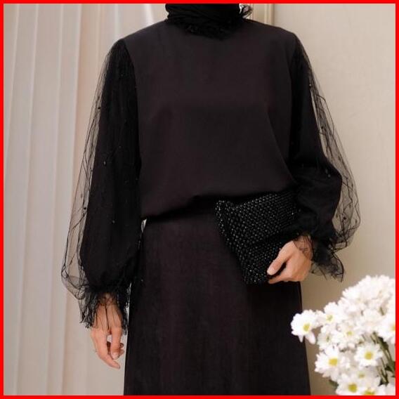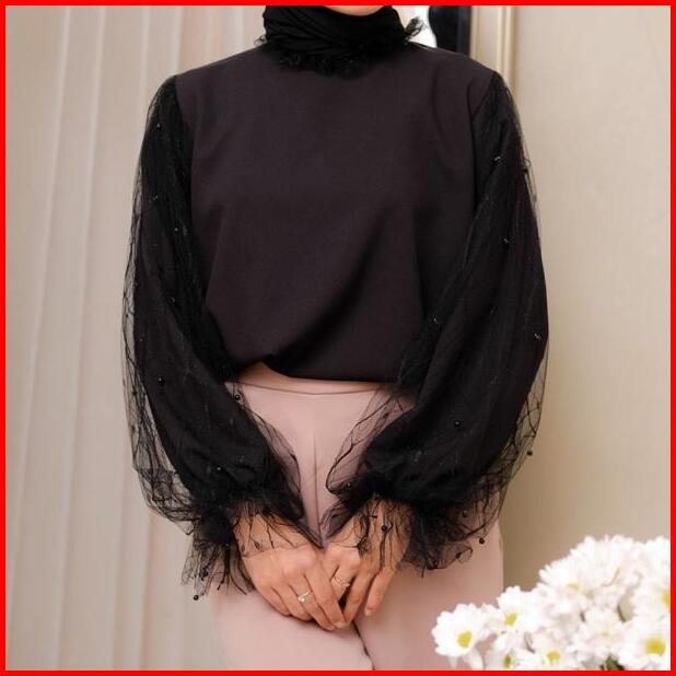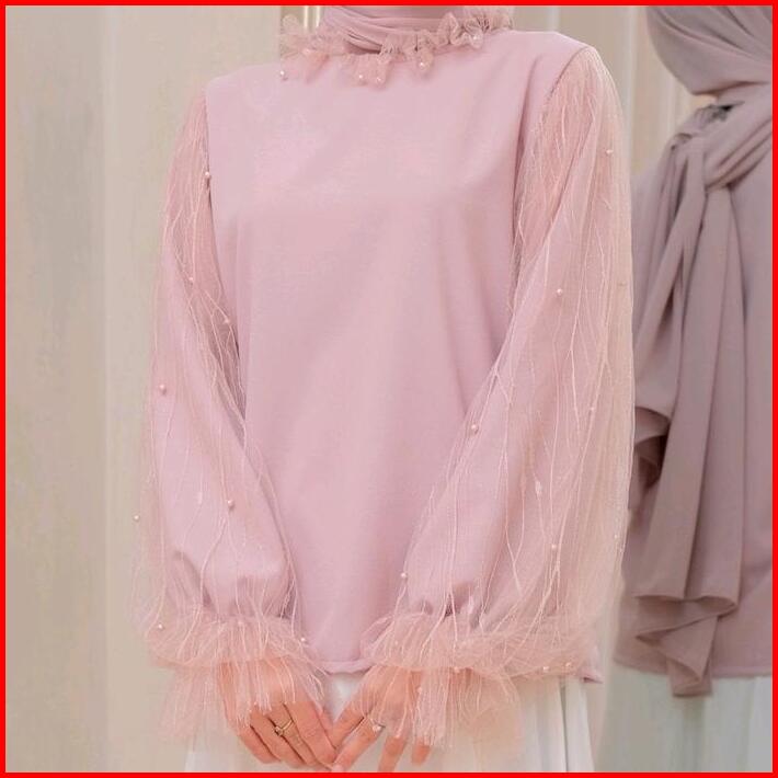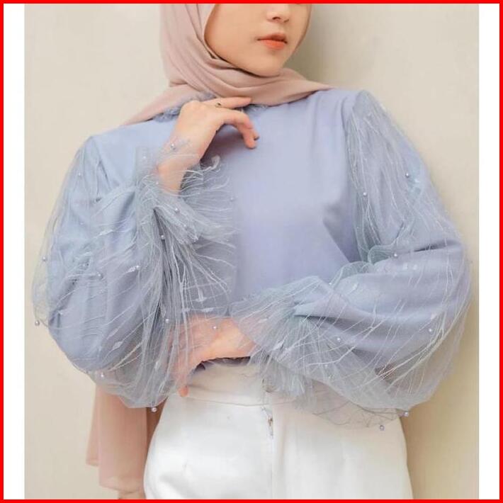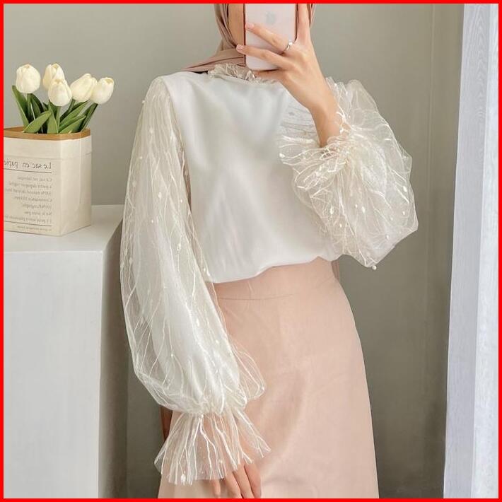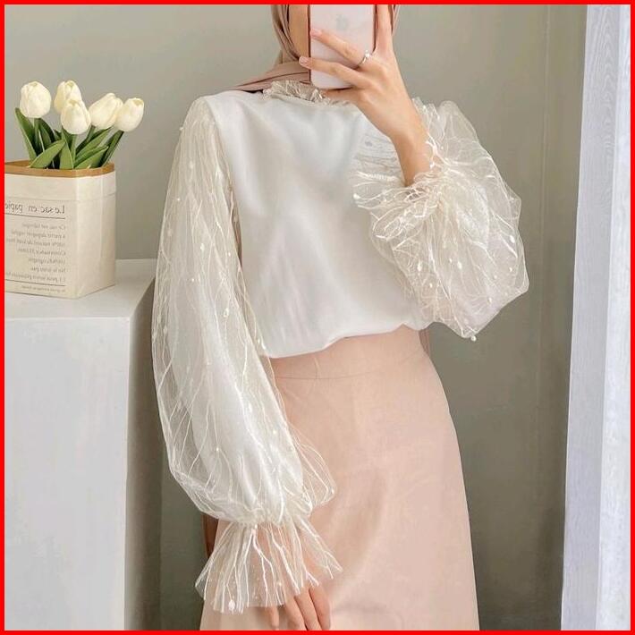 Veronica Blouse Atasan Tulle Wanita Terbaru Dengan Mutiara Atasan Kondangan Katun Bunga Putih Baju Cantik
