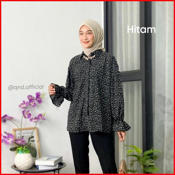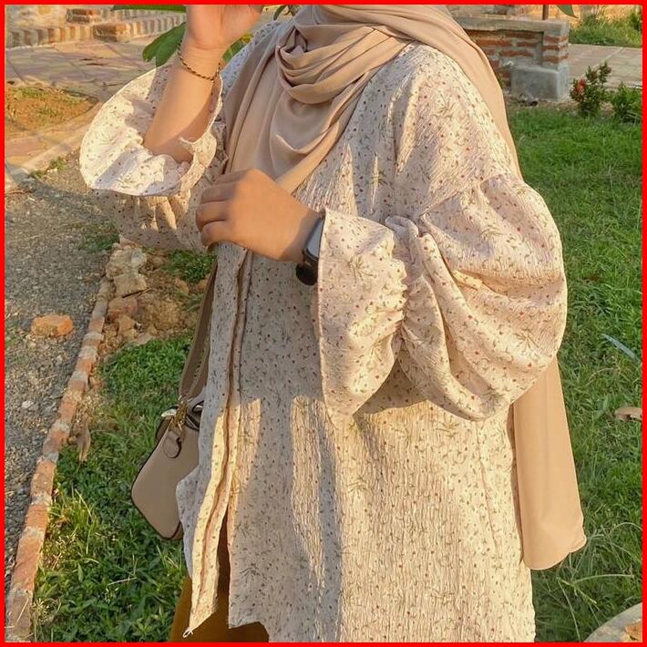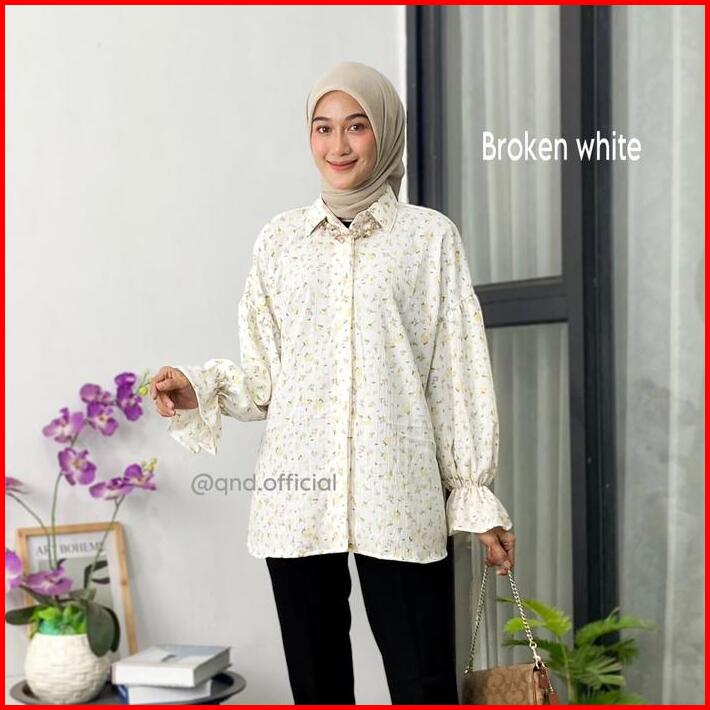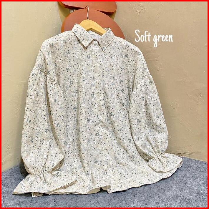 Deza Blouse Flower Kemeja Oversize Bunga Santai Tangan Balon Atasan Panjang Top Casual Baju Wanita Cewek Motif