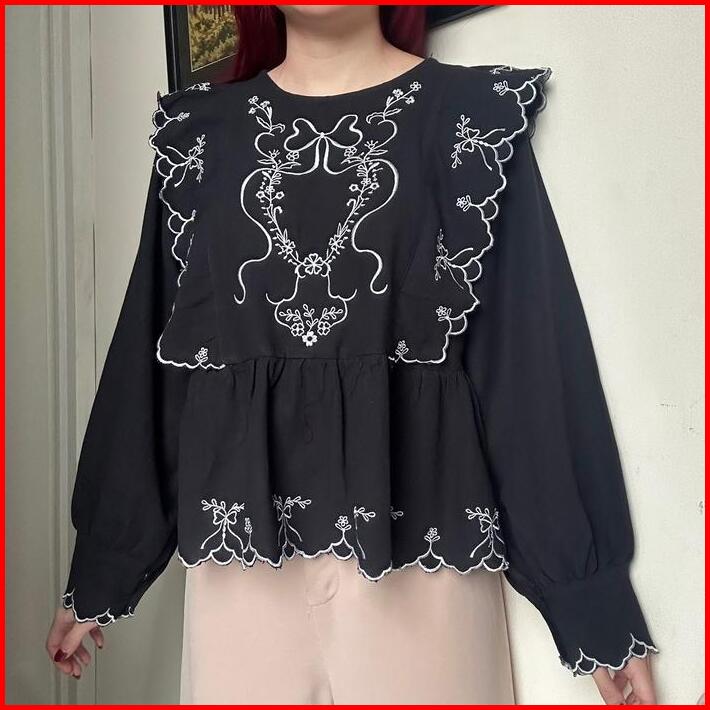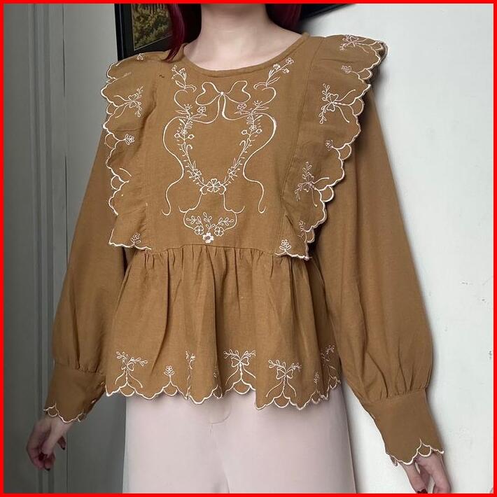 Elisa Top Bkk Atasan Kemeja Blouse Wanita Linen Bordir Korean Style By Biel The Label Panjang Baju
