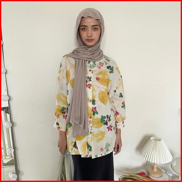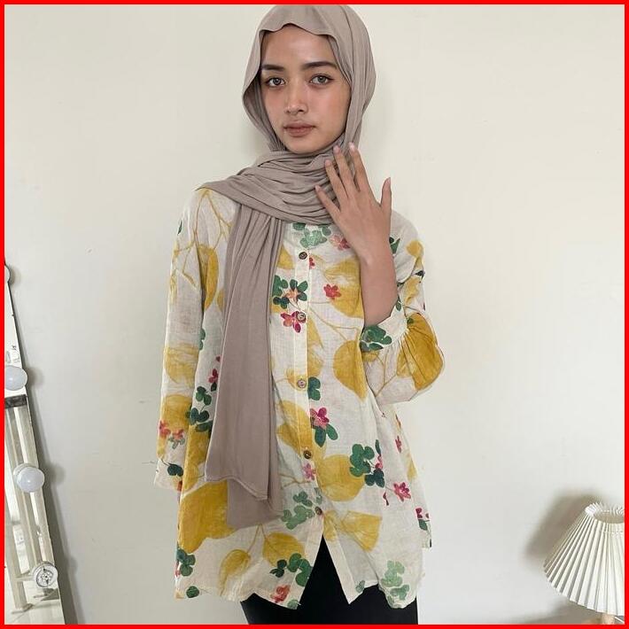Wenda Blouse Wanita Bunga Kuning Lengan Kantor Kerja Korea Style Atasan Baju