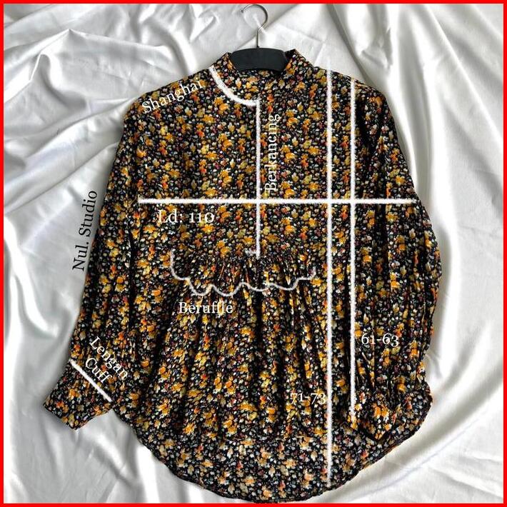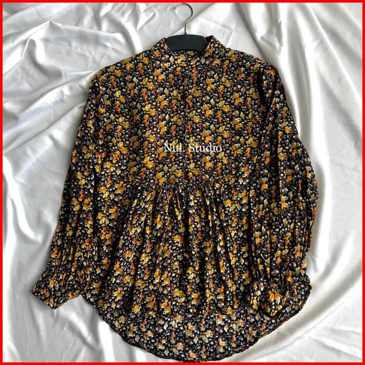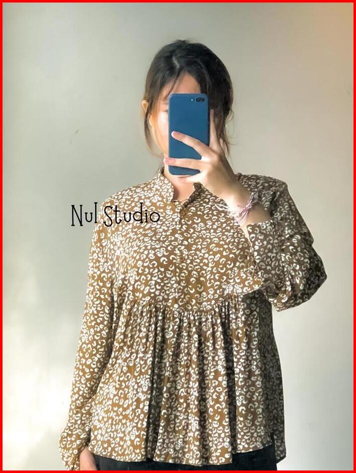 Alina Blouse Rayon Motif Ld 110 Kancing Kerah Wanita Baju Atasan Panjang