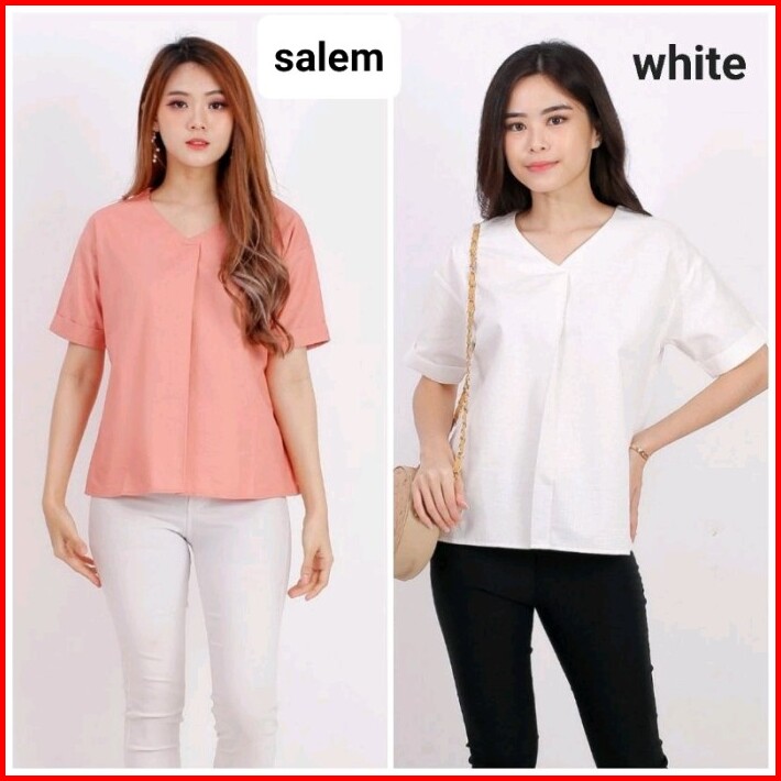 Blouse Casual Ba8215 Lengan Pendek Polos Baju Atasan Wanita Blouse