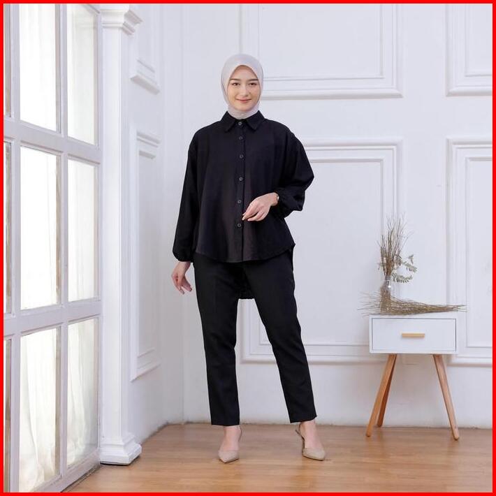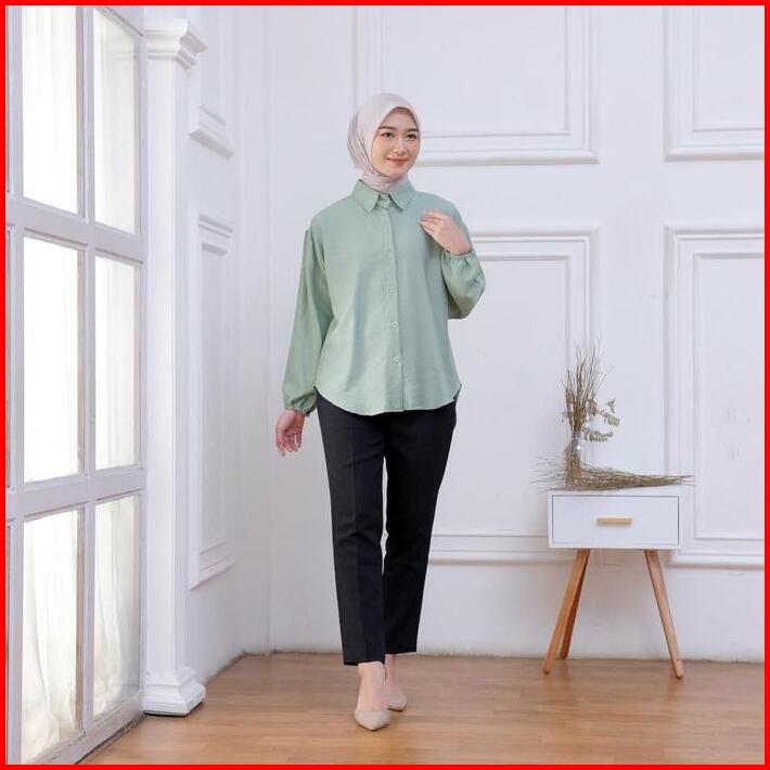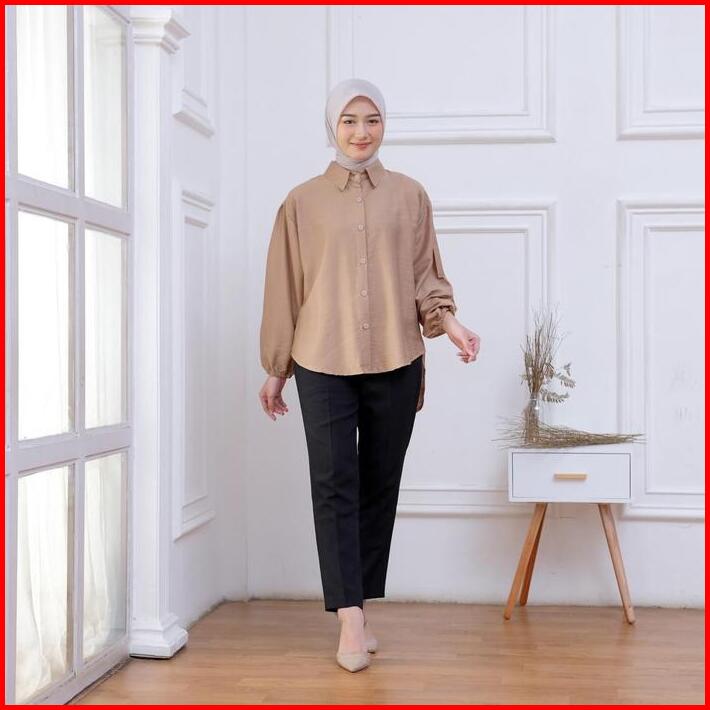 Blus Namira Polos Baju Atasan Wanita Variasi Kancing Belakang Tangan Karet Bahan Polo Linen Polos