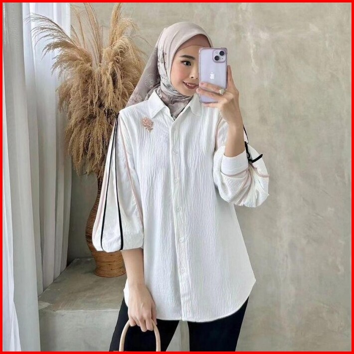 Baju Kemeja Atasan Wanita Lengan Panjang Putih