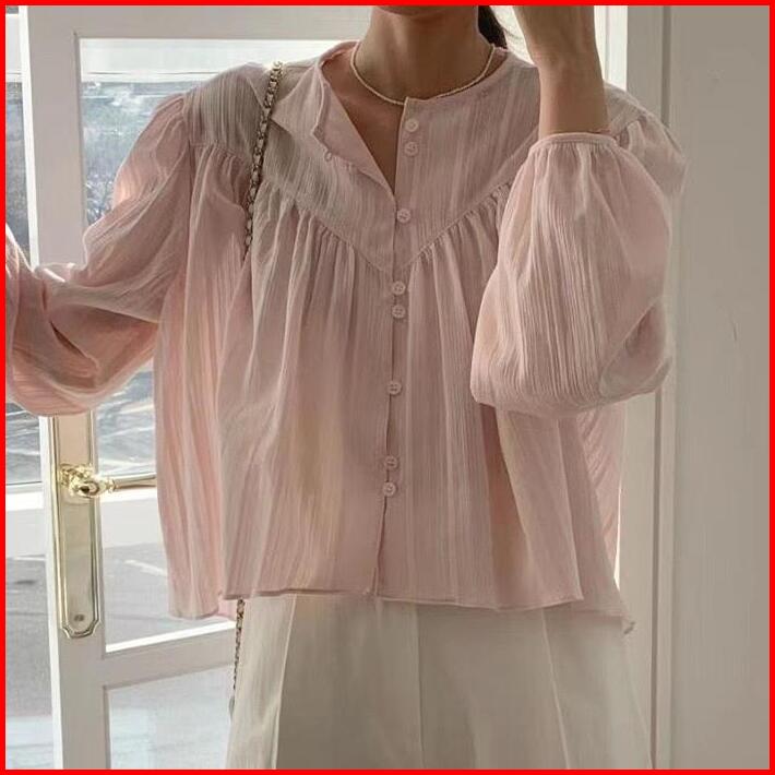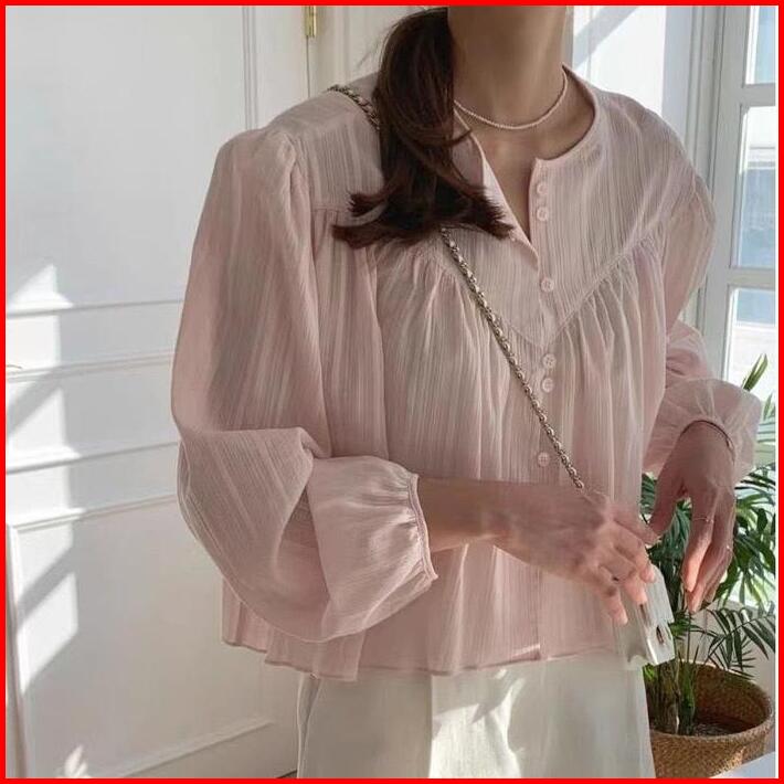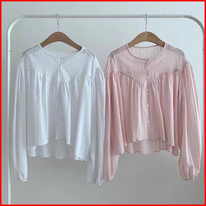 Illy Blouse Atasan Wanita Lengan Panjang Hijab Friendly Polos Plisket Baju Casual