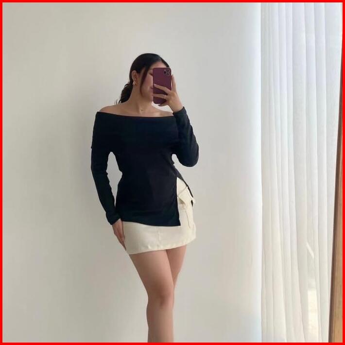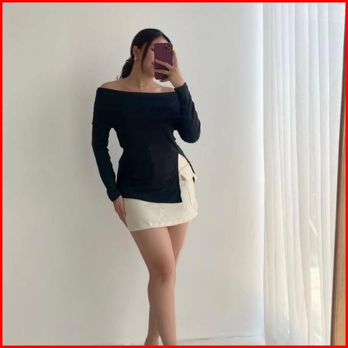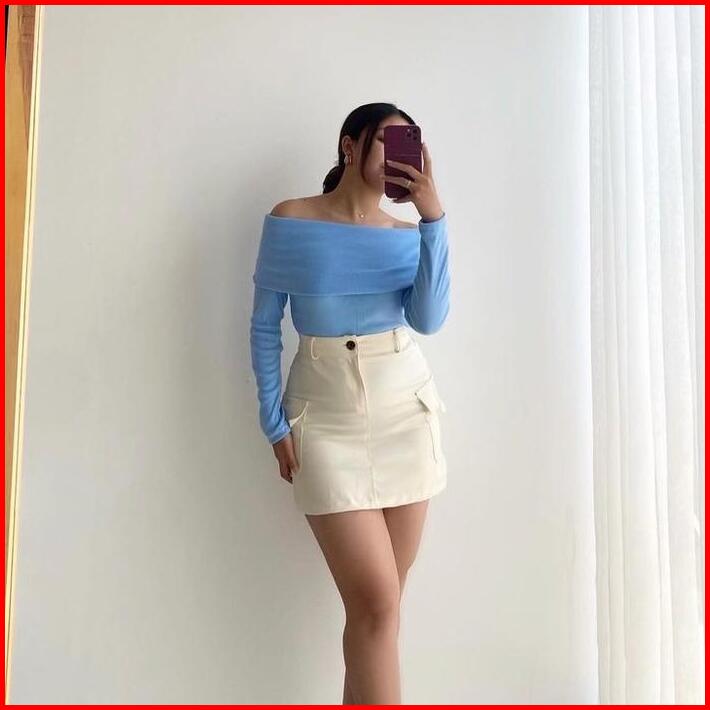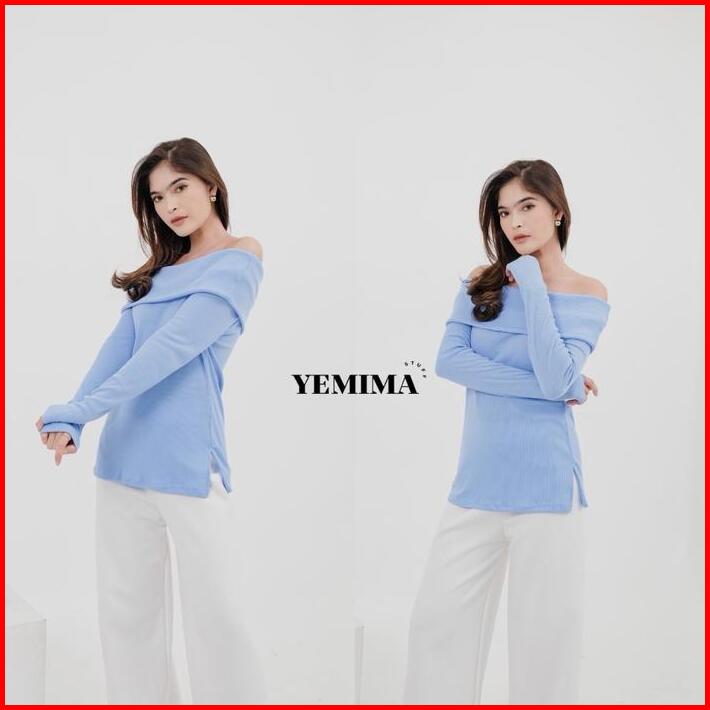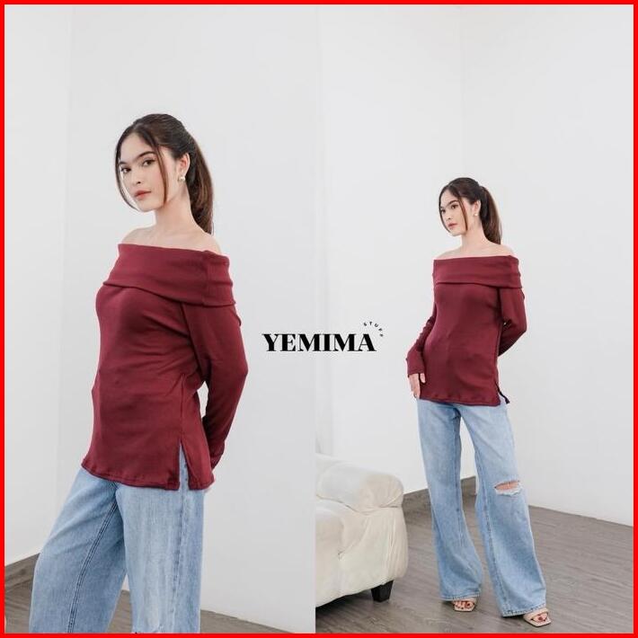 Yemimastuff Rebecca Top Knitwear Atasan Wanita Lengan Panjang Baju Tangan Sabrina Rib High Tebal Nyaman