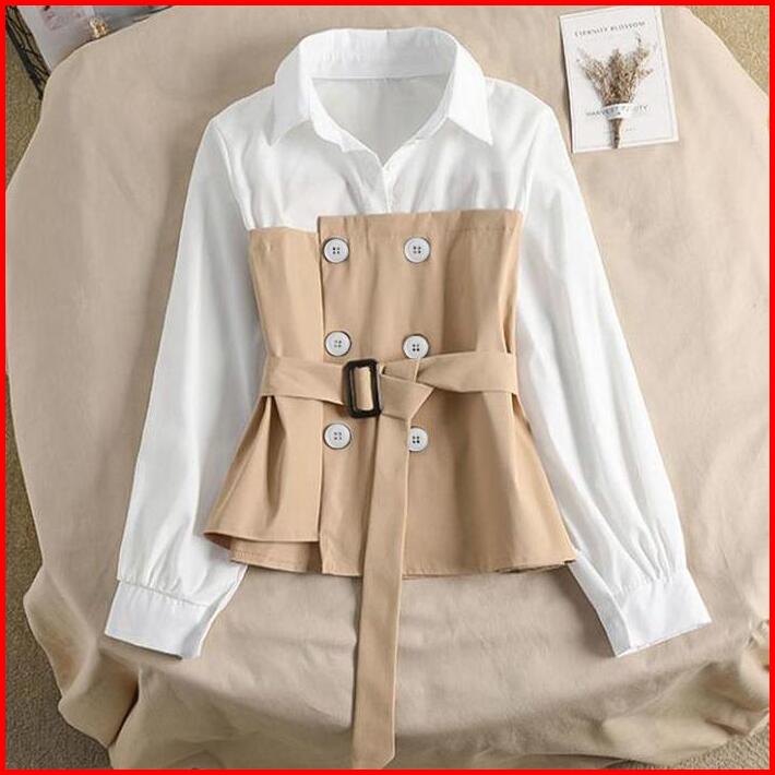 Atasan Wanita Bunga Korea Model Terbaru Tebal Adem Dengan Kancing Variasi