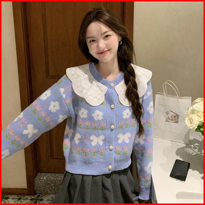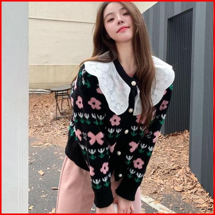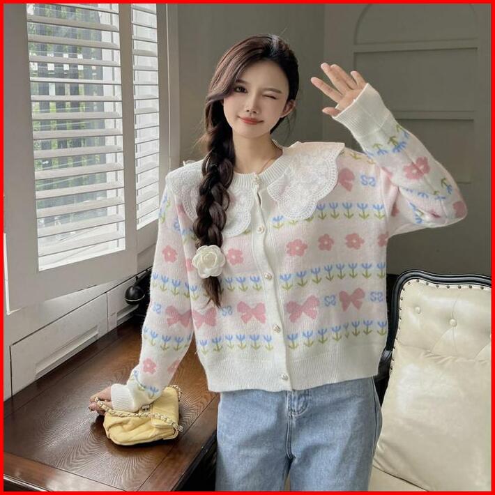 Basica Moda H345 Atasan Top Baju Outer Kardigan Wanita Harumi Rajut Lace Collar
