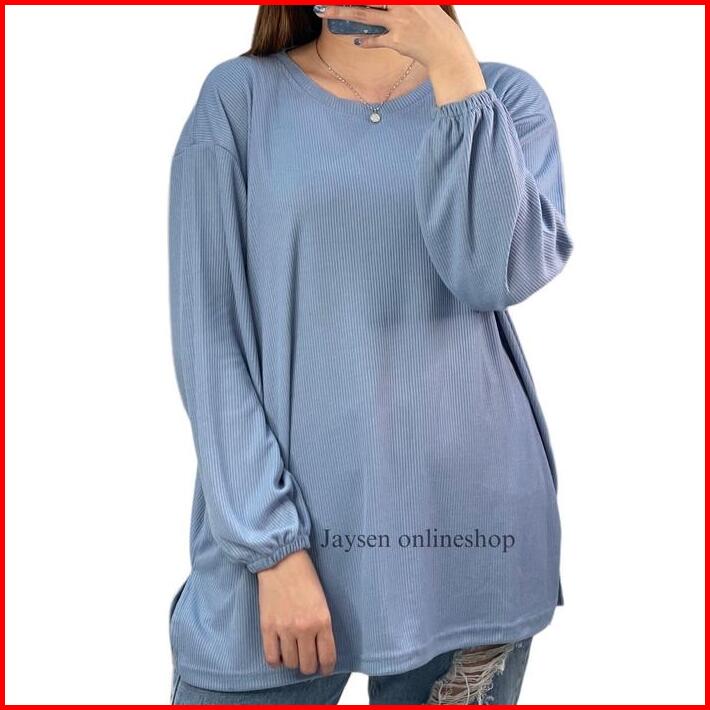 Kaos Rib Lengan Panjang Karet Ld 130cm Atasan Kaos Knit Rib Premium Jumbo Tangan Karet Tshirt Knit Premium Nyaman Baju W