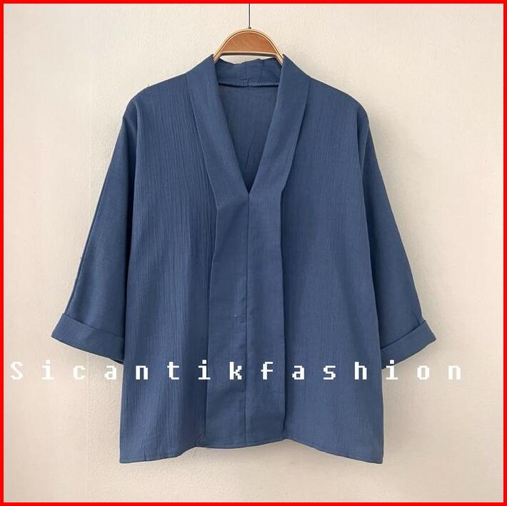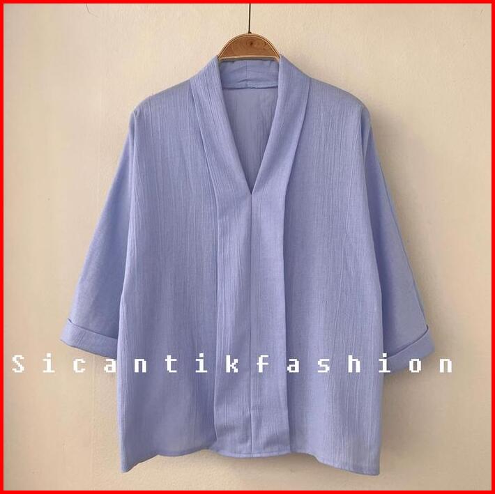 Atasan Cewek V-neck Blouse Wanita Korean Crinkle Linen Pink Variasi Baju