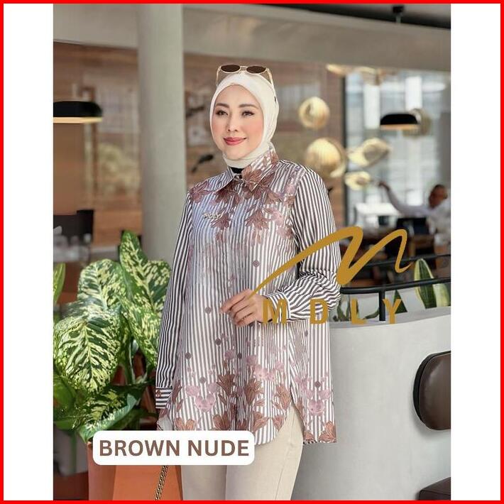 Baju Kemeja Atasan Wanita Motif Garis Joueta Signature Shirt By Mdly