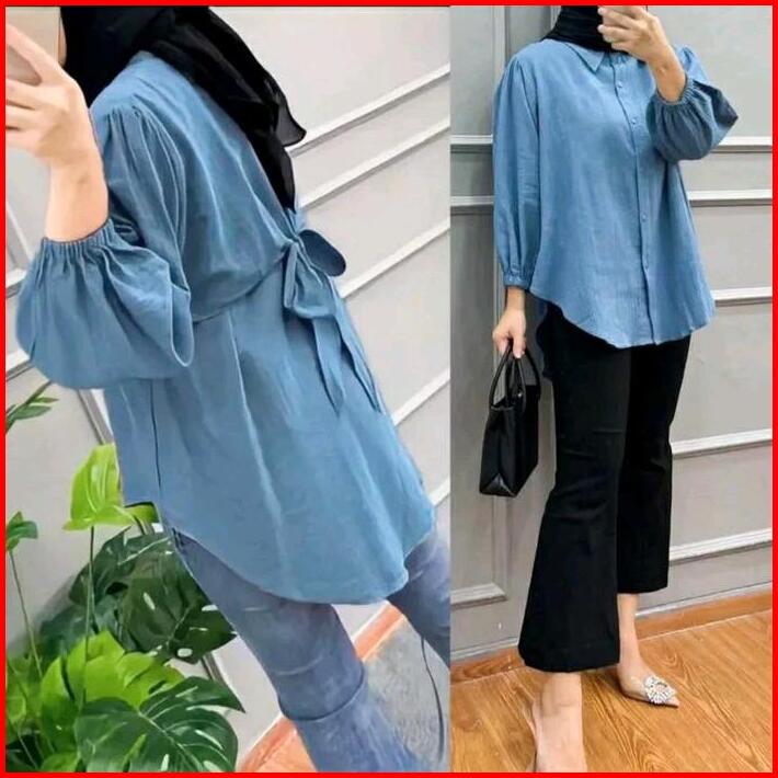 Vivian Blouse Polo Linen Tali Pita Baju Atasan Wanita Casual Formal Kancing Kerah