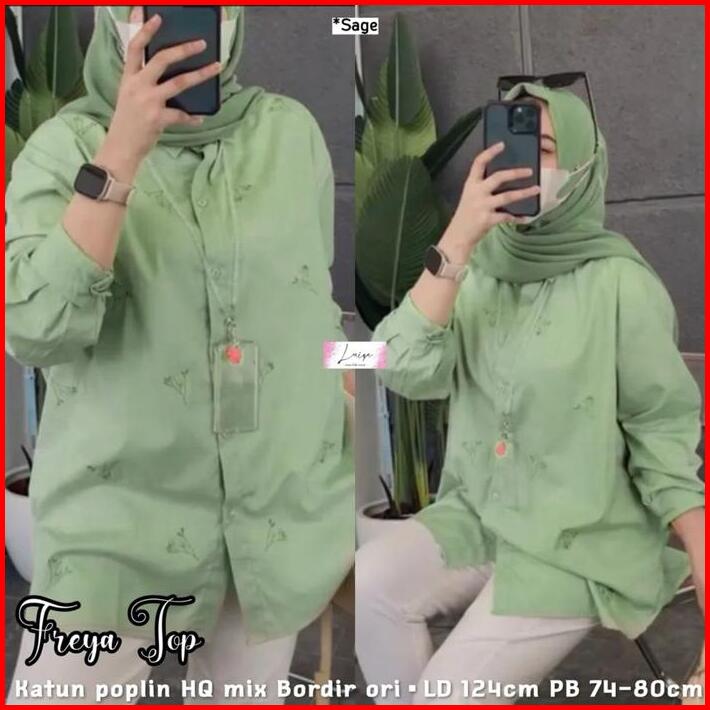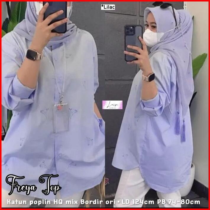 Kemeja Jumbo Wanita Bahan Katun Poplin Kekinian Terbaru Jumbo Nyaman Preya Top Motif Atasan Panjang Baju Oversize Casual