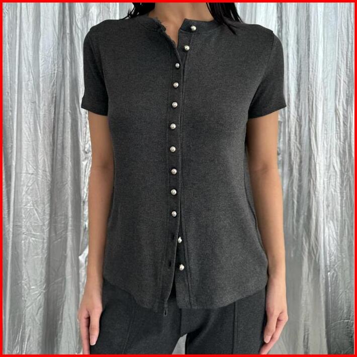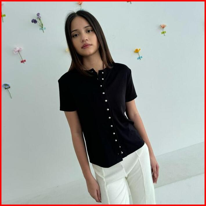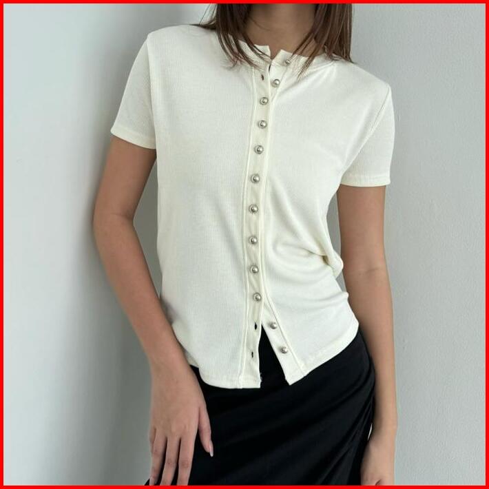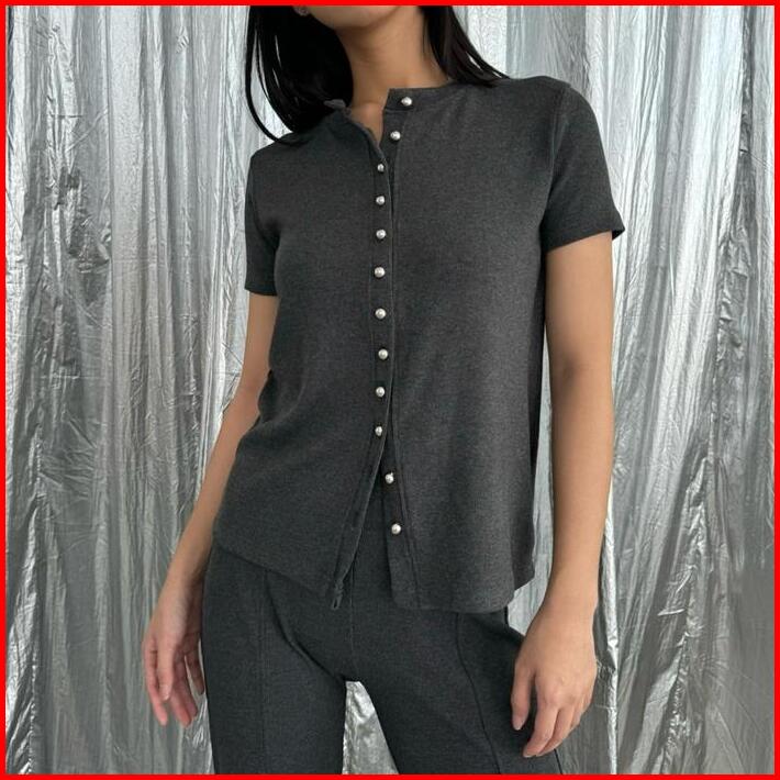 Iona Top Atasan Knit Wanita Lengan Pendek Kancing Basic Korean Button Top Summer Baju Knit Kancing Rib Wanita Long Sleev