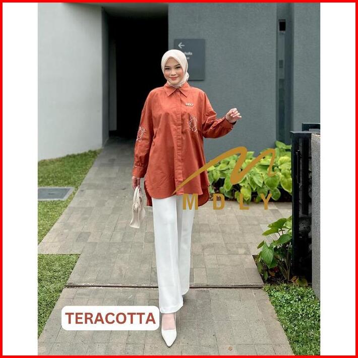 Baju Kemeja Atasan Wanita Nada Signature Shirt Fit Linen Panjang