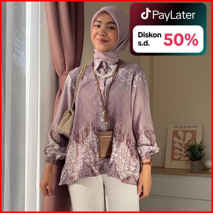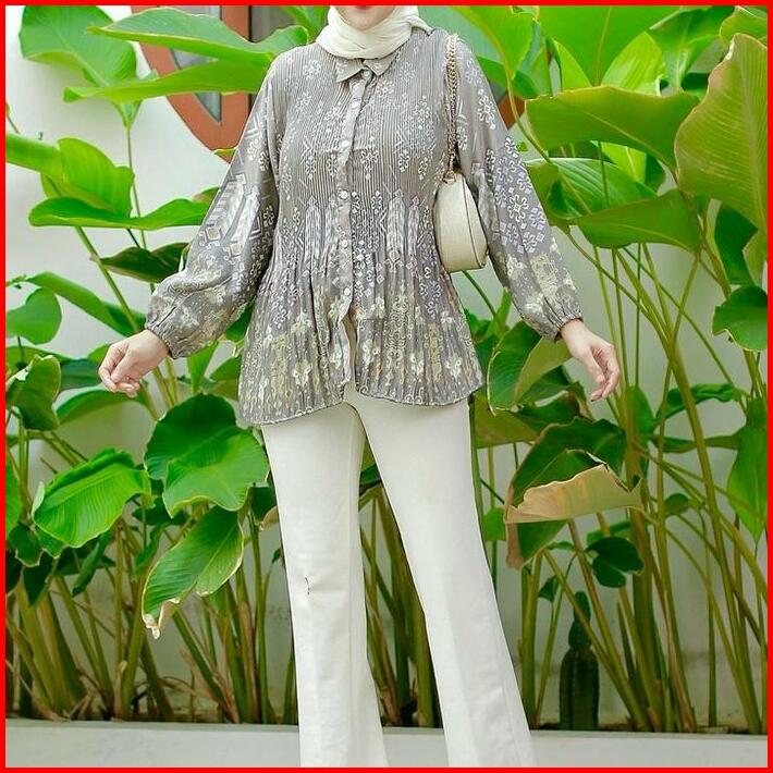 Top Blouse Motif Atasan Motif Blouse Plisket Atasan Wanita Lengan Panjang Motif Etnik Bahan Silky Kemeja Wanita Terbaru