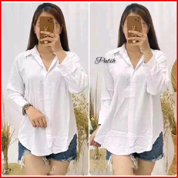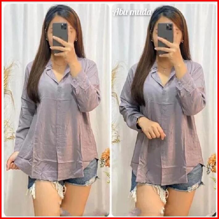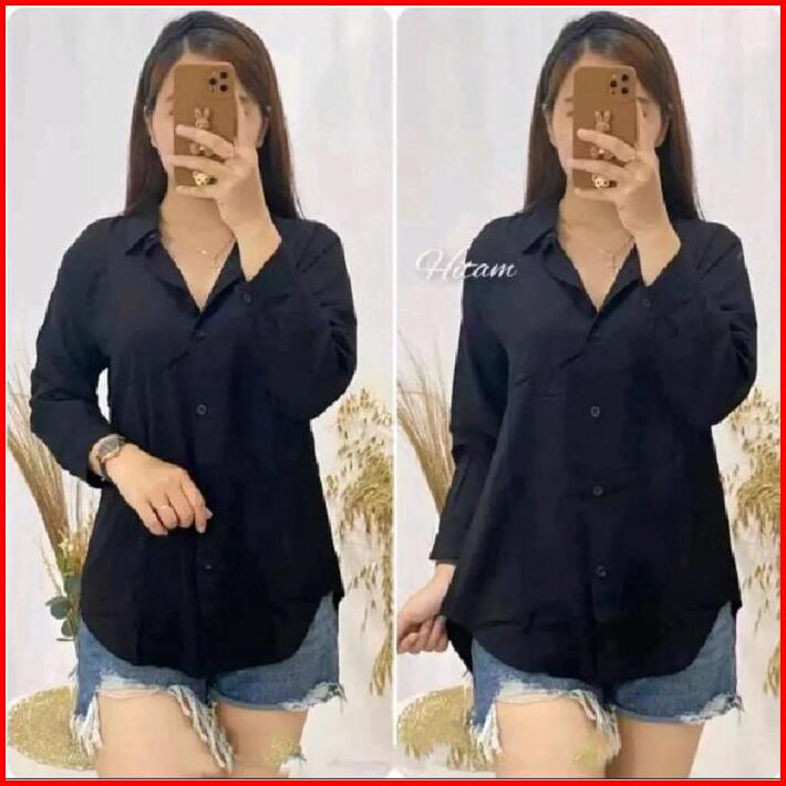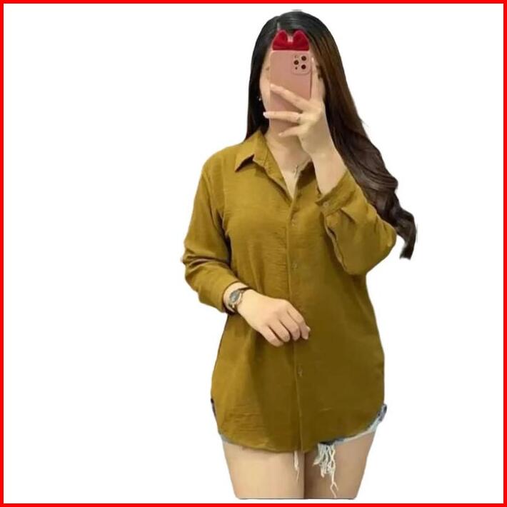 Kemeja Wanita Polos Katun Crinkle Airflow Premium Oversize Santai By As3 Atasan Panjang Baju