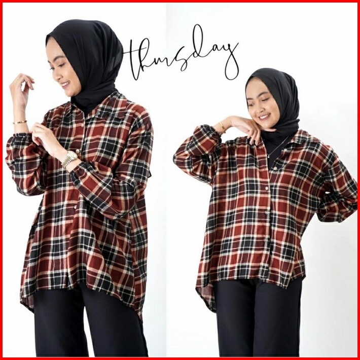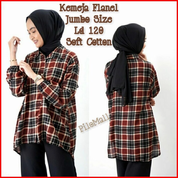 Kemeja Kotak Wanita Jumbo Blouse Katun Baju Atasan Tunik Big Size Xxl