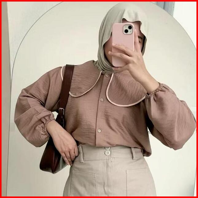 Tore- Winola Blouse Wanita Busui Polo Linen Layer Lis Tangan Karet Baju Kancing Panjang Muslim Atasan