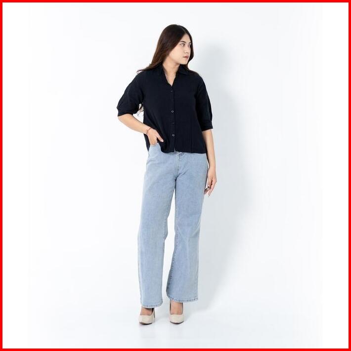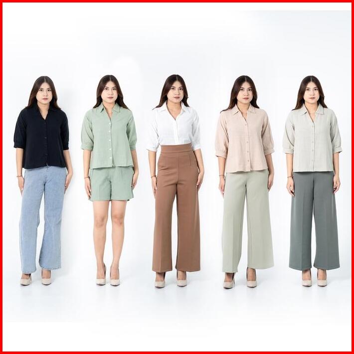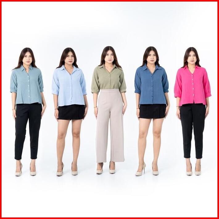 I Look Daily Ruby Linen Shirt Wanita Atasan Kerja Panjang Baju Oversize Basic Pendek Formal Kancing Kerah Nyaman Kantor