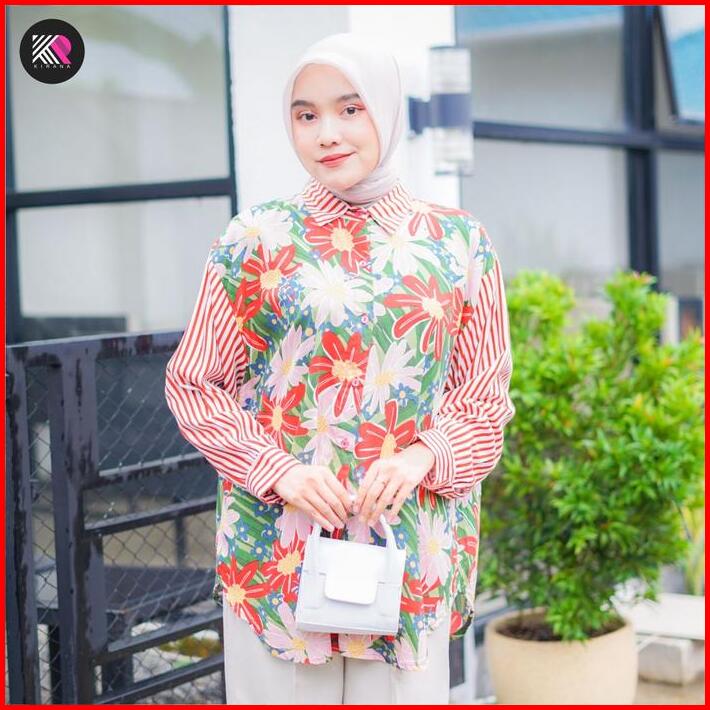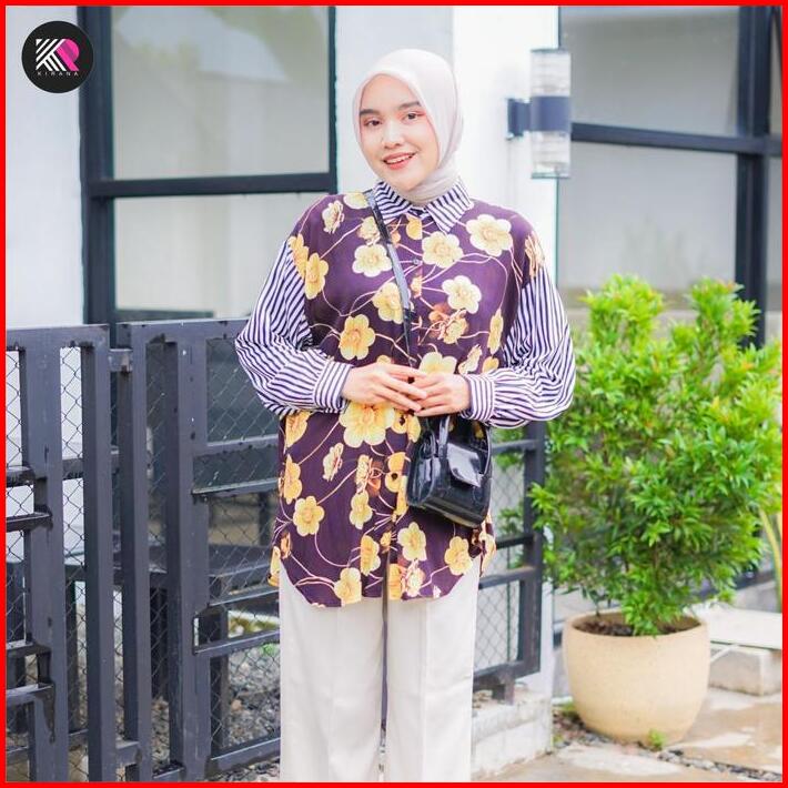Kiranaofficial Kemeja Kamila Salur Baju Wanita Panjang Rayon Atasan Nyaman Oversize Viscose Manset Muslim