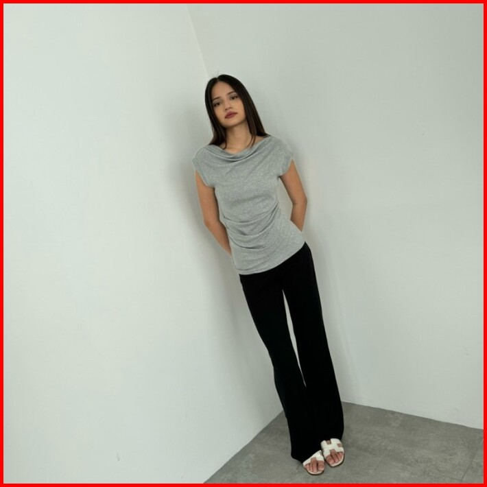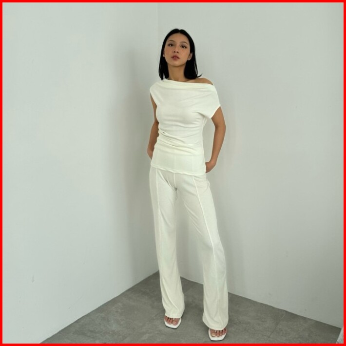 Uma Top Atasan Off Shoulder Knit Wanita Lengan Pendek Ruched Pleated Rample Sabrina Basic One Shoulder Korean Top Summer