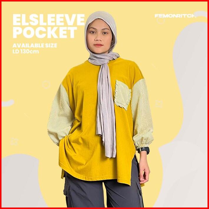 Elsleeve Pocket Atasan Wanita Jumbo Blouse Oversize Lengan Balon Wudhu Hijab Friendly Ld 130cm Baju Katun Combed Nyaman