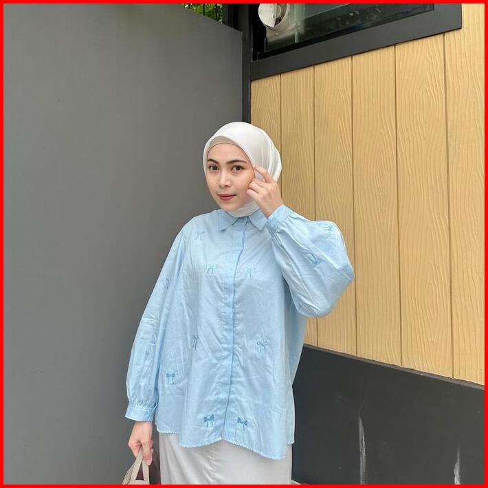 Elena Closet Pita Shirt Kemeja Pita Bordir Ribbon Shirt Atasan Wanita Baju Balon Katun