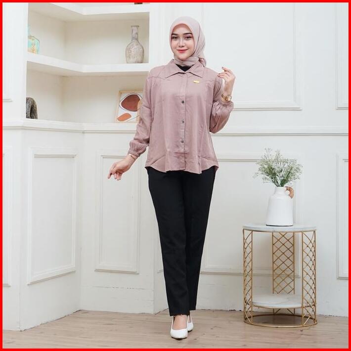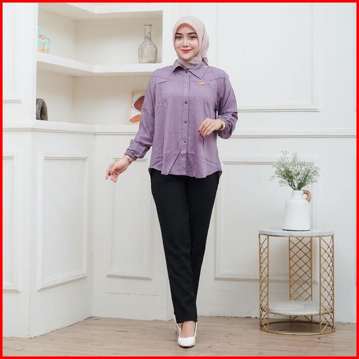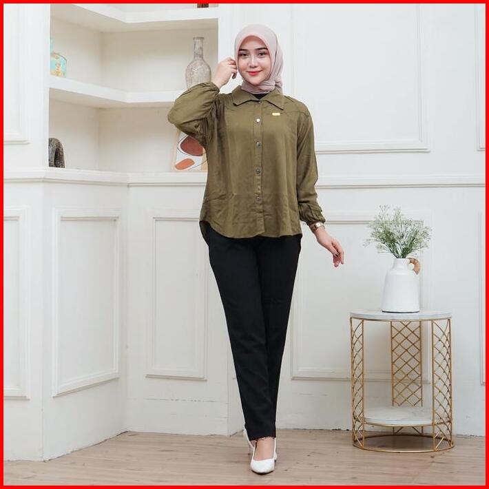 Sahilla Shirt Kemeja Rayon Twill Besic Wanita Polos Kekinian Lengan Panjang Casual Baju Muslim Atasan Basic Nyaman Overs