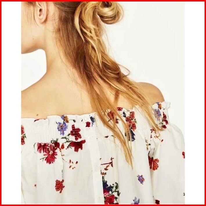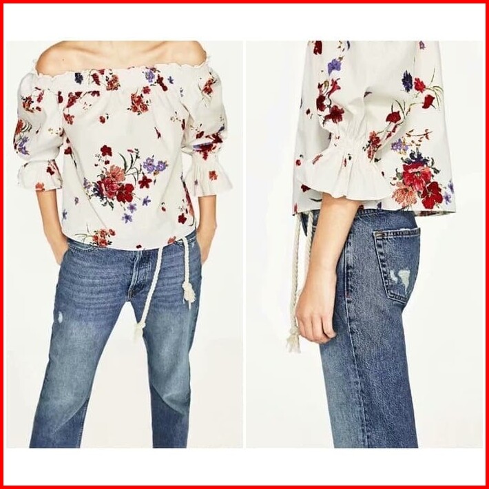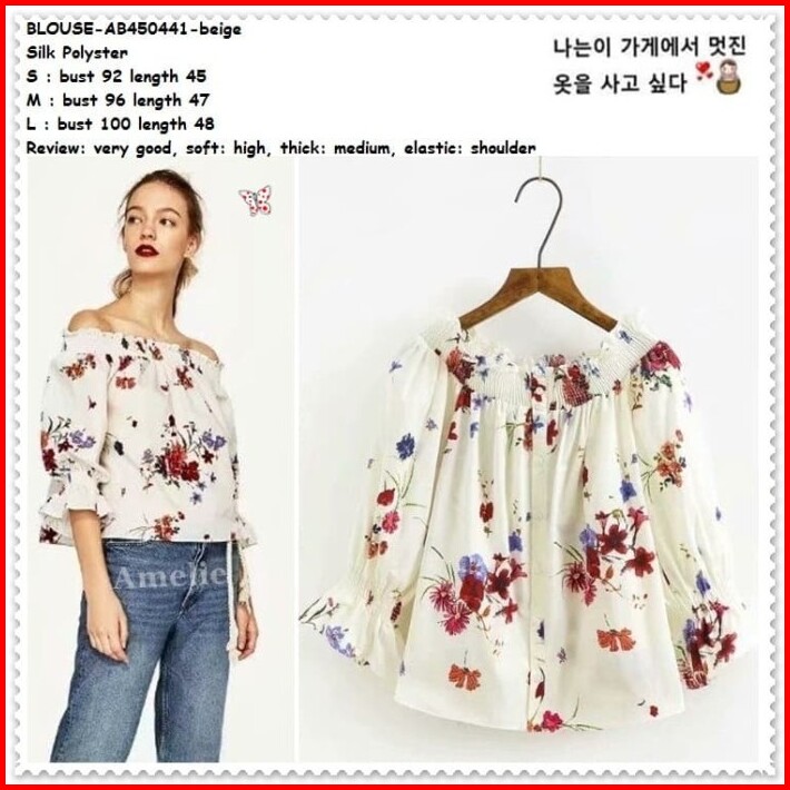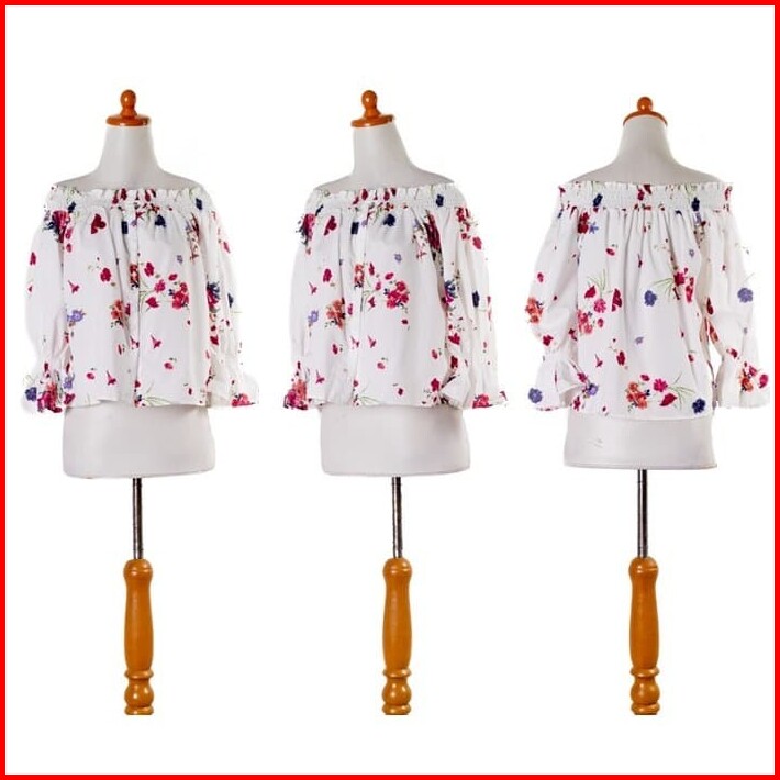 Ab450441 Baju Atasan Sabrina Bunga Wanita Blouse Korea Import Putih