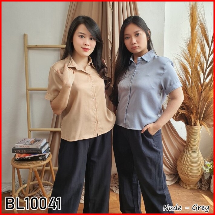 Baju Atasan Kemeja Wanita Lengan Pendek Polos Basic Kerja Kantor