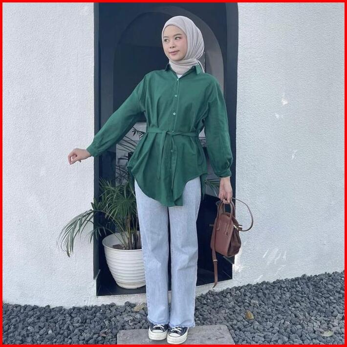 Purry Shirt Wanita Linen Rami Premium Atasan Panjang Kancing Semi Basic Baju Nyaman
