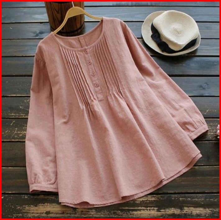 Nazifa Blouse Atasan Wanita Muslim 3 Size L Xl Xxl Katun Linen Crinkle Polos Nyaman Pink Casual Baju Simple Panjang Rema