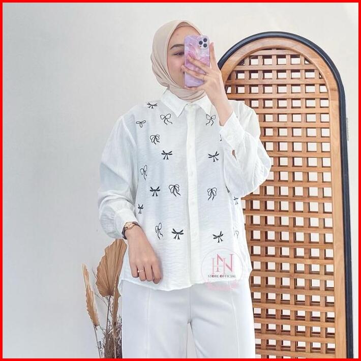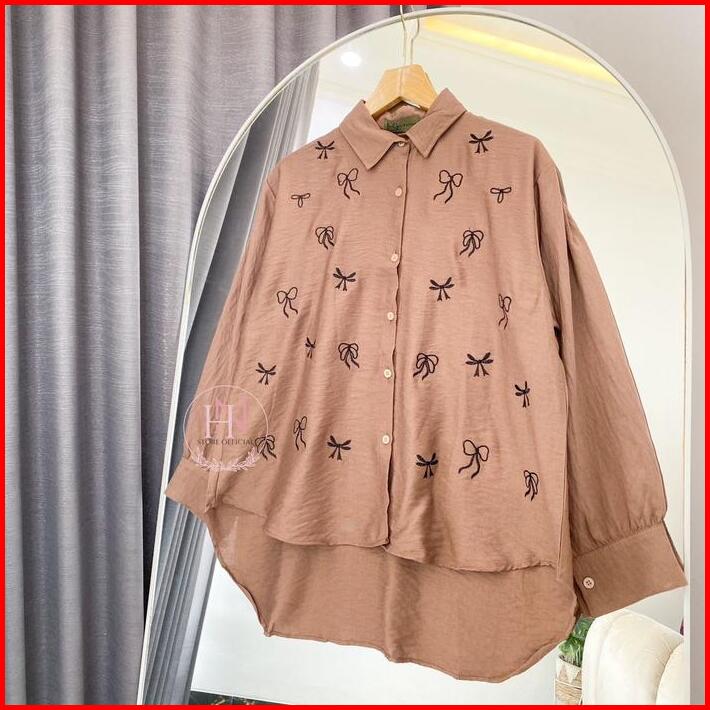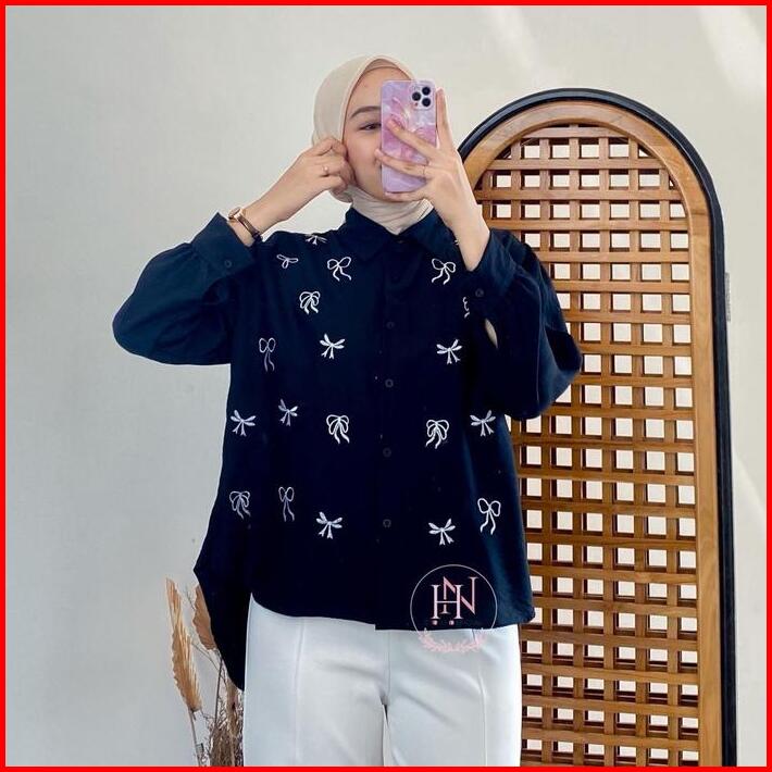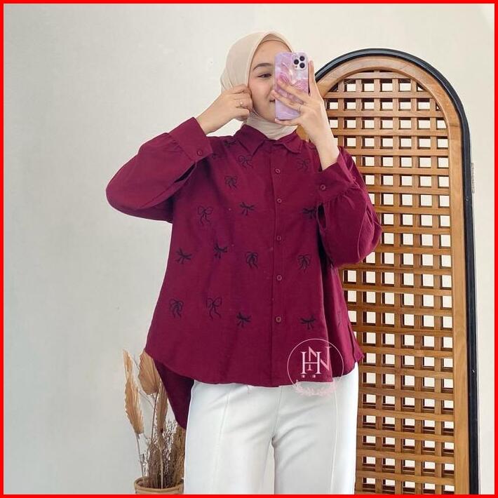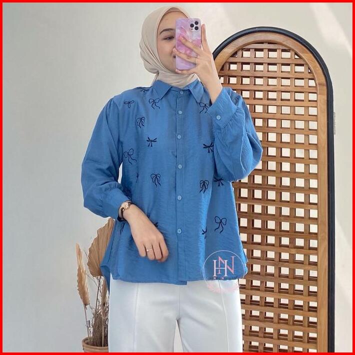 Candy Kemeja Baju Kerah Bordir Atasan Wanita Kancing Kerah Blouse Casual Dewasa