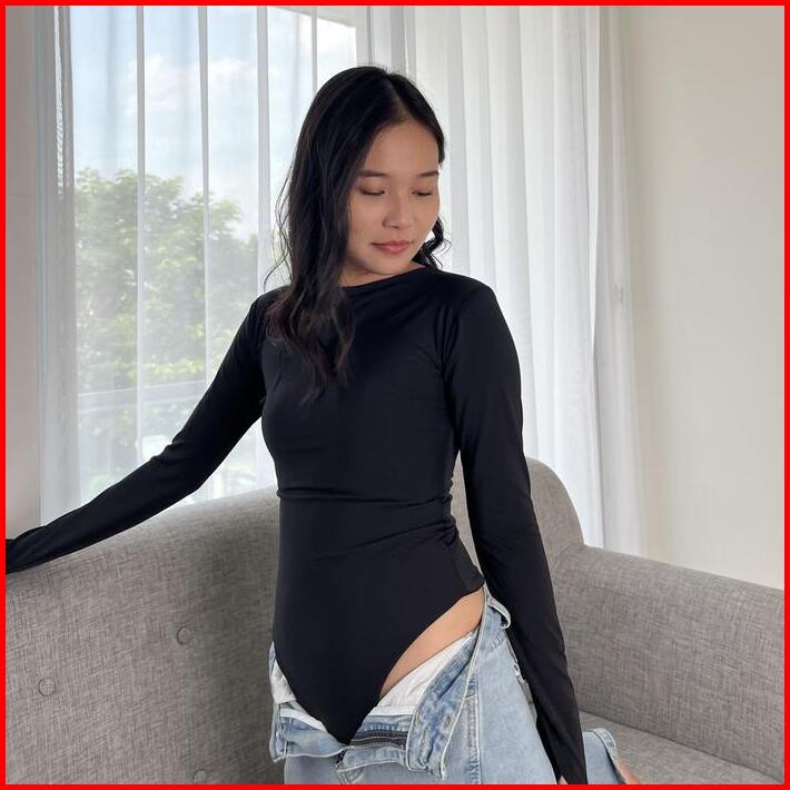 Lolabae April Xxl Baju Atasan Wanita Long Sleeve Bodysuit Basic Polos Lengan Panjang Xxl Kaos Jersey Spandex Big Size