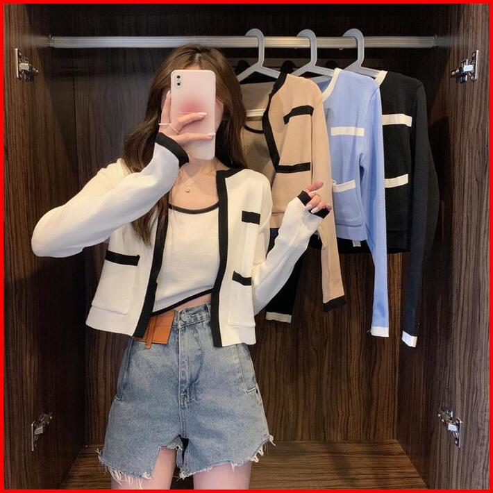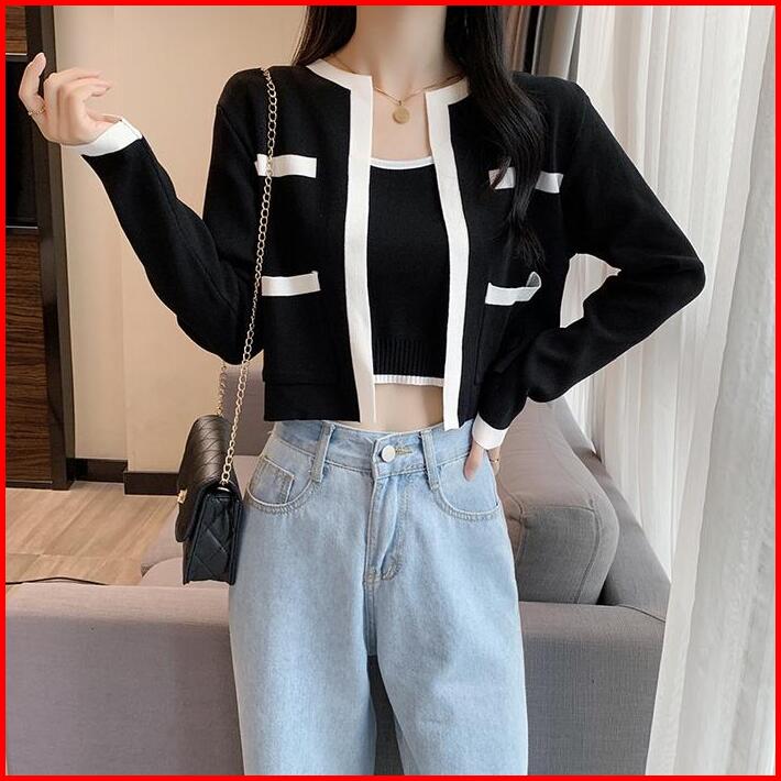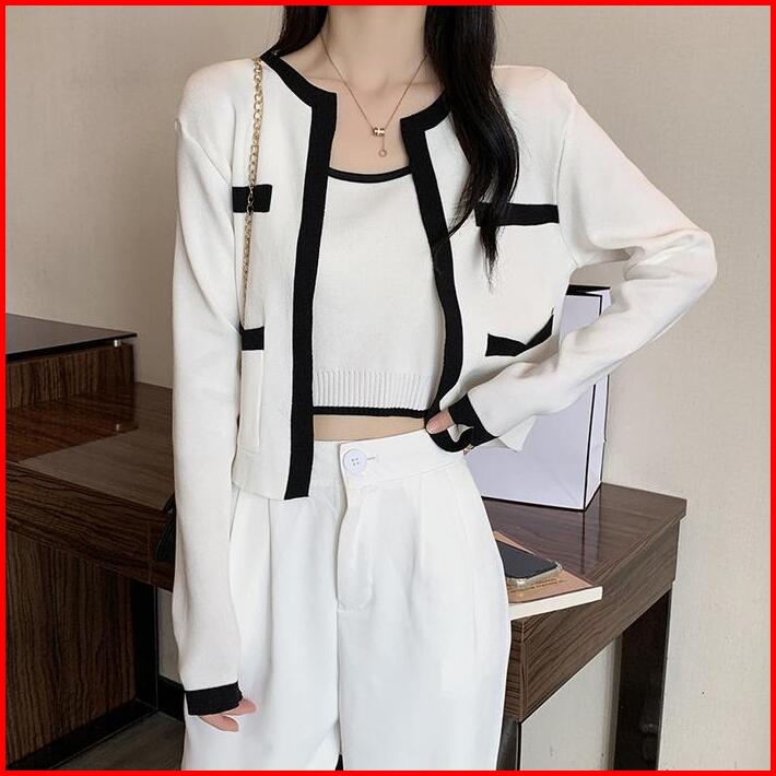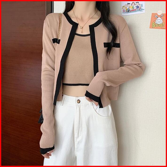 Tteuda Atasan Tanktop Cardigan Set Lengan Panjang Kekinian Rajut Premium Baju Atasan Wanita Tanktop Cardigan Lengan Panj
