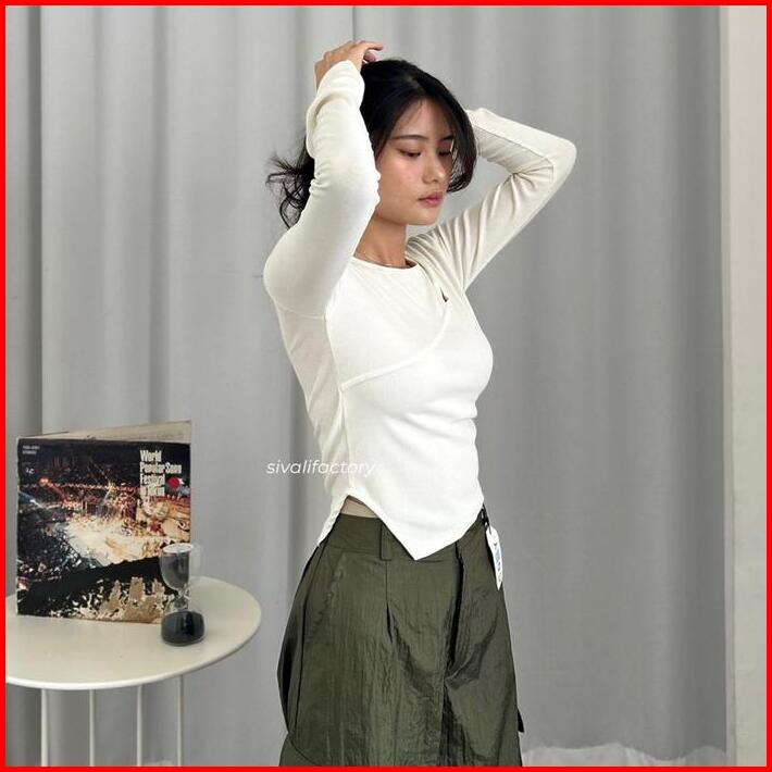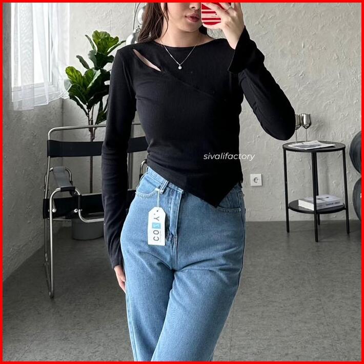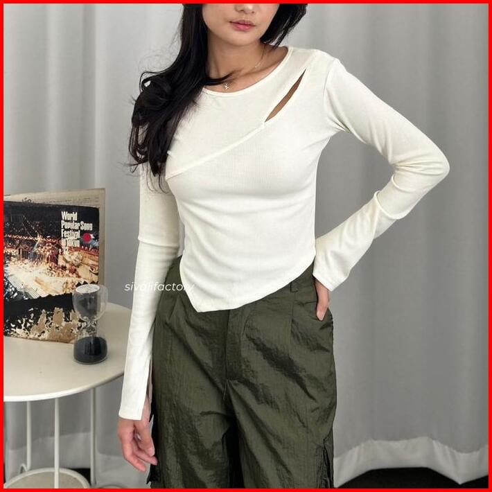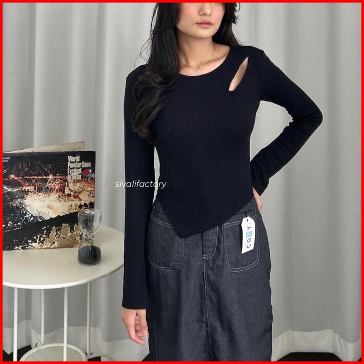 Sivali Haewon Top Atasan Knit Wanita Lengan Panjang Korean Top Cut Out Crop Top Baju Knitwear Cardigan Sweater Outer Ove