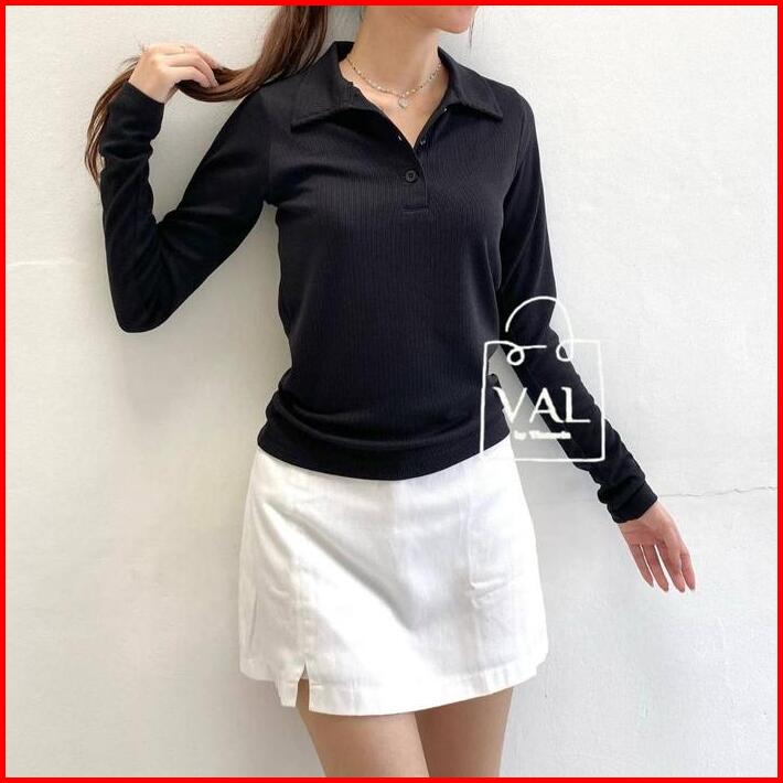 Clody Casual Knit Buttons Top Atasan Wanita Korean Top Baju Knit Wanita Long Sleeve Basic K30