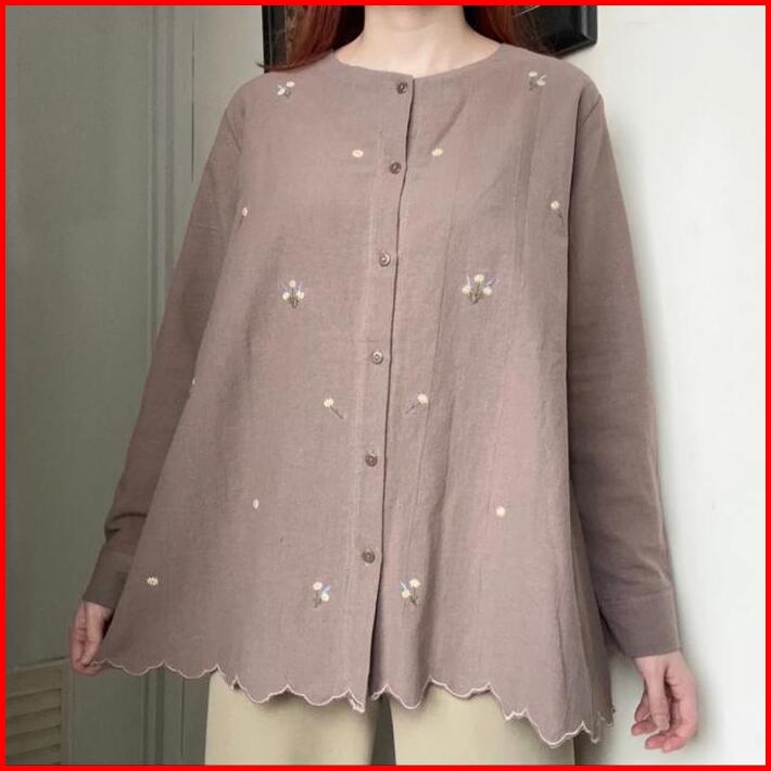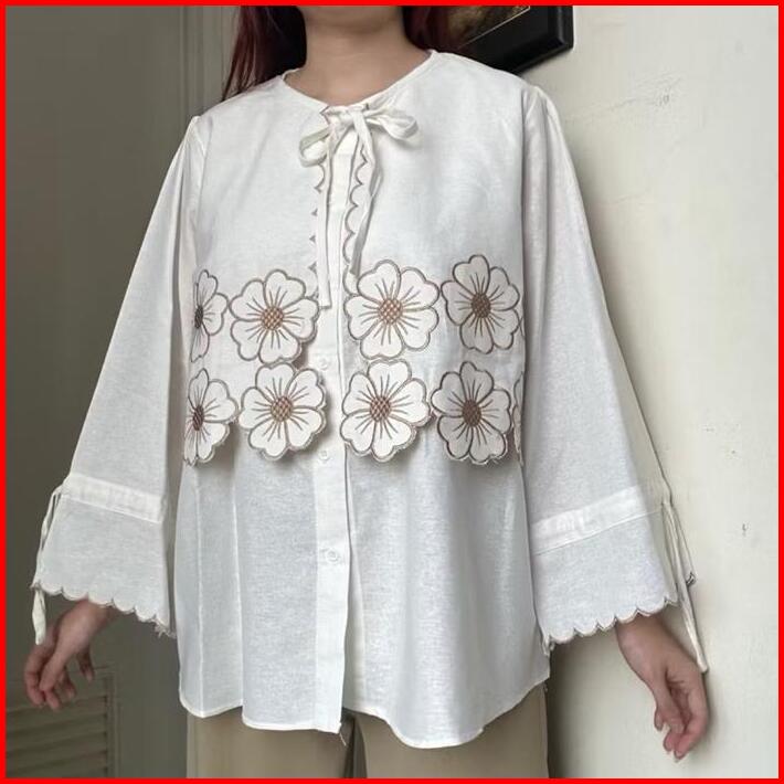 Citra Top Atasan Blouse Kemeja Wanita Kerja Linen Bordir Korean Style By Biel The Label Panjang Baju Oversize Cewek