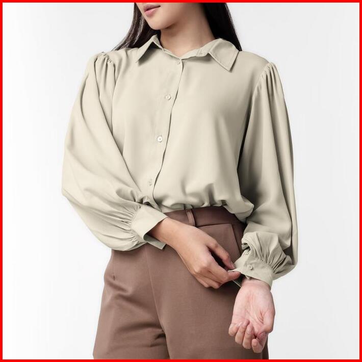 Benhill Kemeja Wanita Seori Tops Lengan Panjang Olive 867-39779 Atasan Baju